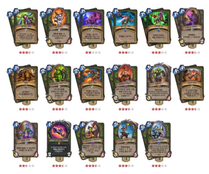 명치냥꾼이라는 이름부터 살벌한 덱입니다. 다른 어그로보다도 더 극심하게 명치를 가격하는 덱으로 상대 영웅에게 대미지를 줄 수 있도록 특화된 카드가 많습니다. 손패가 마르기는 하지만 손패를 채울 카드들이 은근히 포진해있어서 어차피 못 끝내면 내가 끝난다 마인드로 하는 덱이기 때문에 무지성으로 하기 딱 좋은 덱입니다.