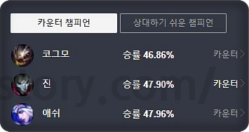 승률은 좀 낮은 편이지만 특유의 재미 때문에 인기가 많습니다. 또 생각보다 이즈리얼 상대로 좋고, 탑 탱커, 딜탱 상대로 좋은 모습을 보여줄 수 있어서 무난하게 후픽만 가져온다면 정말 좋은 챔피언입니다.