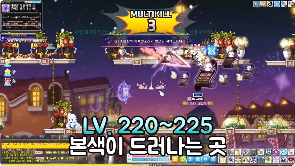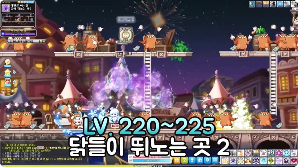 220~225레벨은 시계탑, 본색이 드러나는 곳, 닭들이 뛰노는 곳2 중에서 편한 사냥터를 찾아 사냥을 진행하시면 됩니다.