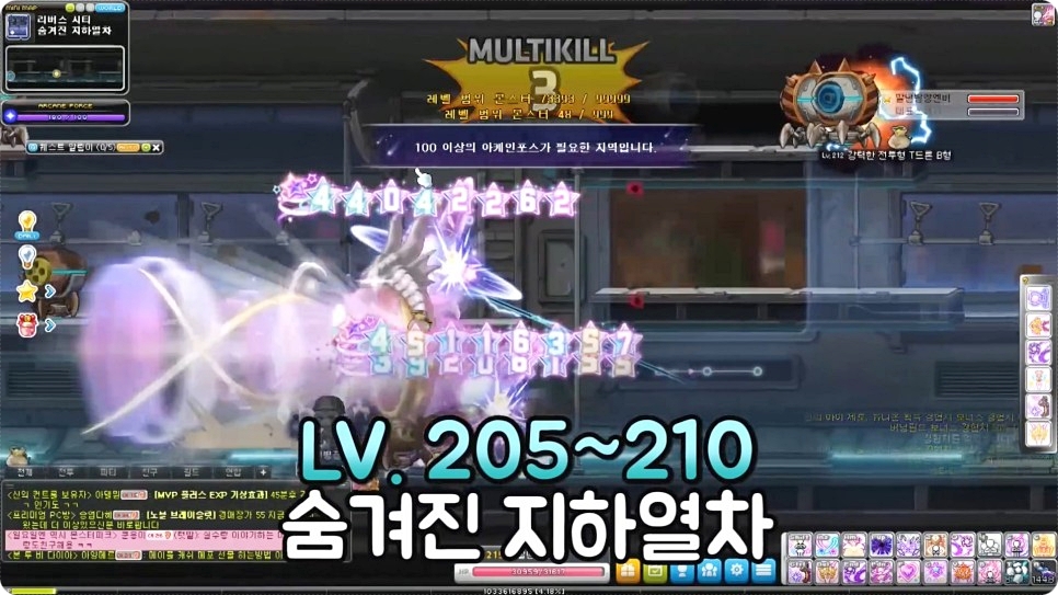 205~210레벨에는 숨겨진 지하열차, 숨겨진 연구열차중에서 편한 장소에서 사냥을 진행하시면 됩니다.