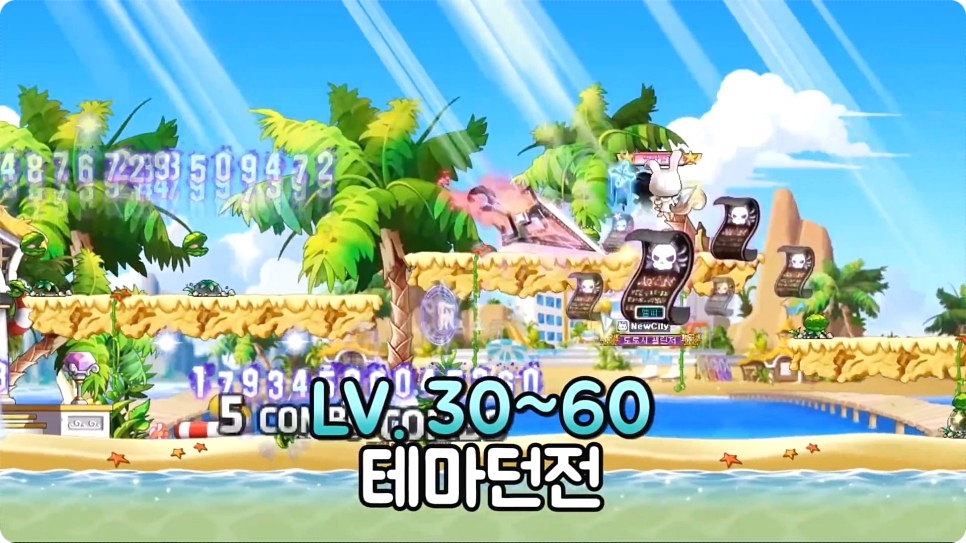 30 레벨은 2차 전직을 진행한 후 30~60까지 4군데의 테마 던전을 진행하시면 됩니다. 테마 던전은 골드비치, 리엔, 요정의 숲, 엘로딘이 있으며, 4군데의 테마 던전 퀘스트만 진행을 해도 60 레벨까지 레벨업을 할 수 있다고 합니다. 또 퀘스트마다 100만 메소, 장비 아이템을 주기 때문에 무자본 유저들에게 도움이 많이 되는 사냥터라고 하네요.