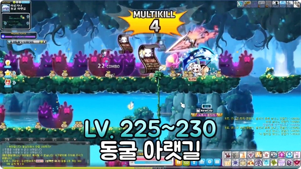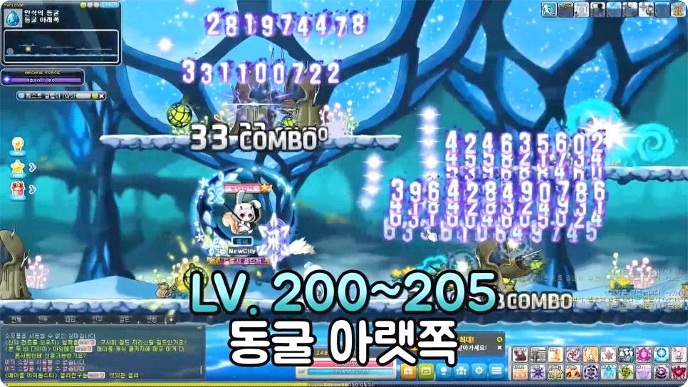 210~215레벨에는 몽땅 동굴숲1, 격류지대3, 츄릅포레스트 깊은 곳 중에서 편한 장소를 골라 사냥을 진행하시면 됩니다.