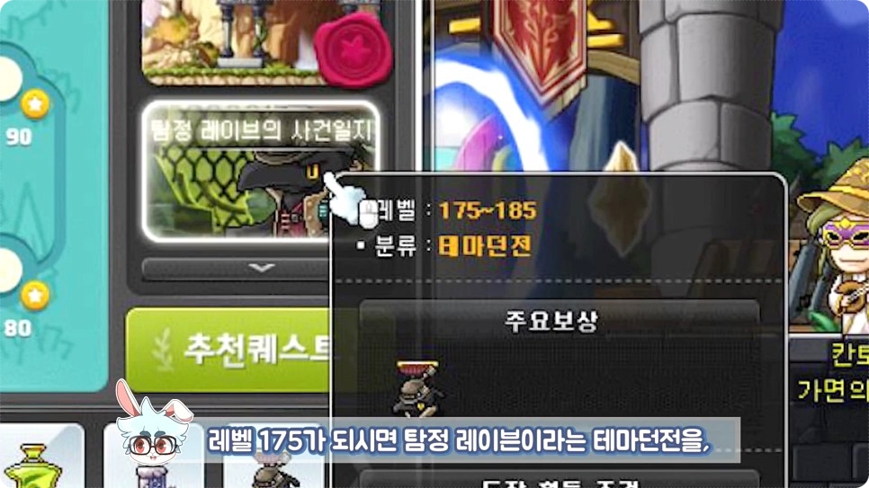175레벨이 되면 테마던전 탐정 레이븐을 돌고, 185레벨에는 테마던전 여우골짜기를 도시면 됩니다.