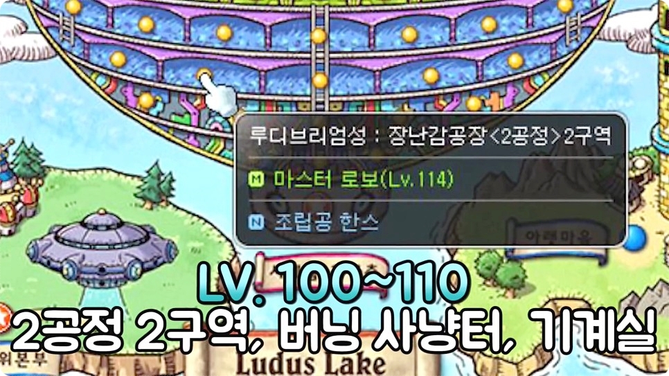 100~110레벨은 2공정 2구역의 버닝 사냥터를 추천을 드린다고 합니다. 사람이 너무 많을 경우 오른쪽 끝에 있는 기계실도 상당히 효율이 좋다고 합니다.