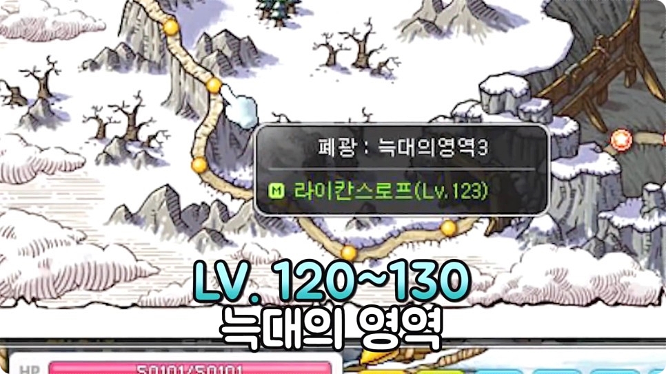 110~120레벨은 날카로운 절력을 가면 된다고 하는데요. 예티와 페페, 스노우맨 등을 잡으면 된다고 합니다. 버닝이 높은 사냥터라 레벨을 빠르게 올릴 수 있는 사냥터라고 합니다.