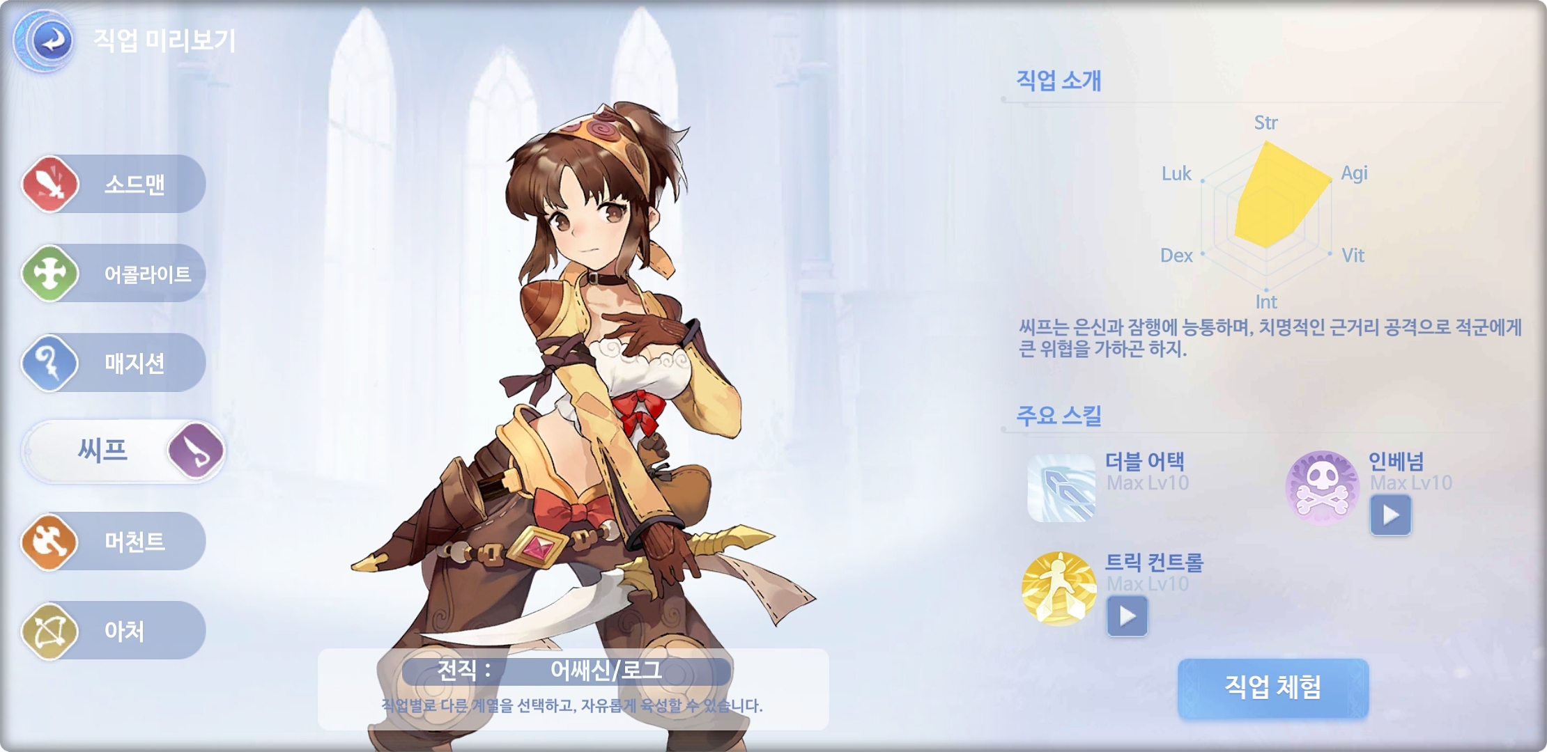 원거리 궁수의 경우 뒤에서 안정적으로 딜을 넣기에 복사 계열에게 부담이 덜해서 선호도가 높고, 상인 계열의 경우 버프 기술로 파티 자체에 도움이 되기 때문에 단순 딜러인 어쌔신보다 선호도가 높습니다. 그렇다고 무조건 나쁜 것은 아닌데 도적 직업이 은신을 통한 PVP에서 강한 모습을 보여주고, 은근히 재미가 있어서 솔로플레이는 나쁘지 않습니다. 그래도 개인적으로 추천은 안 합니다.