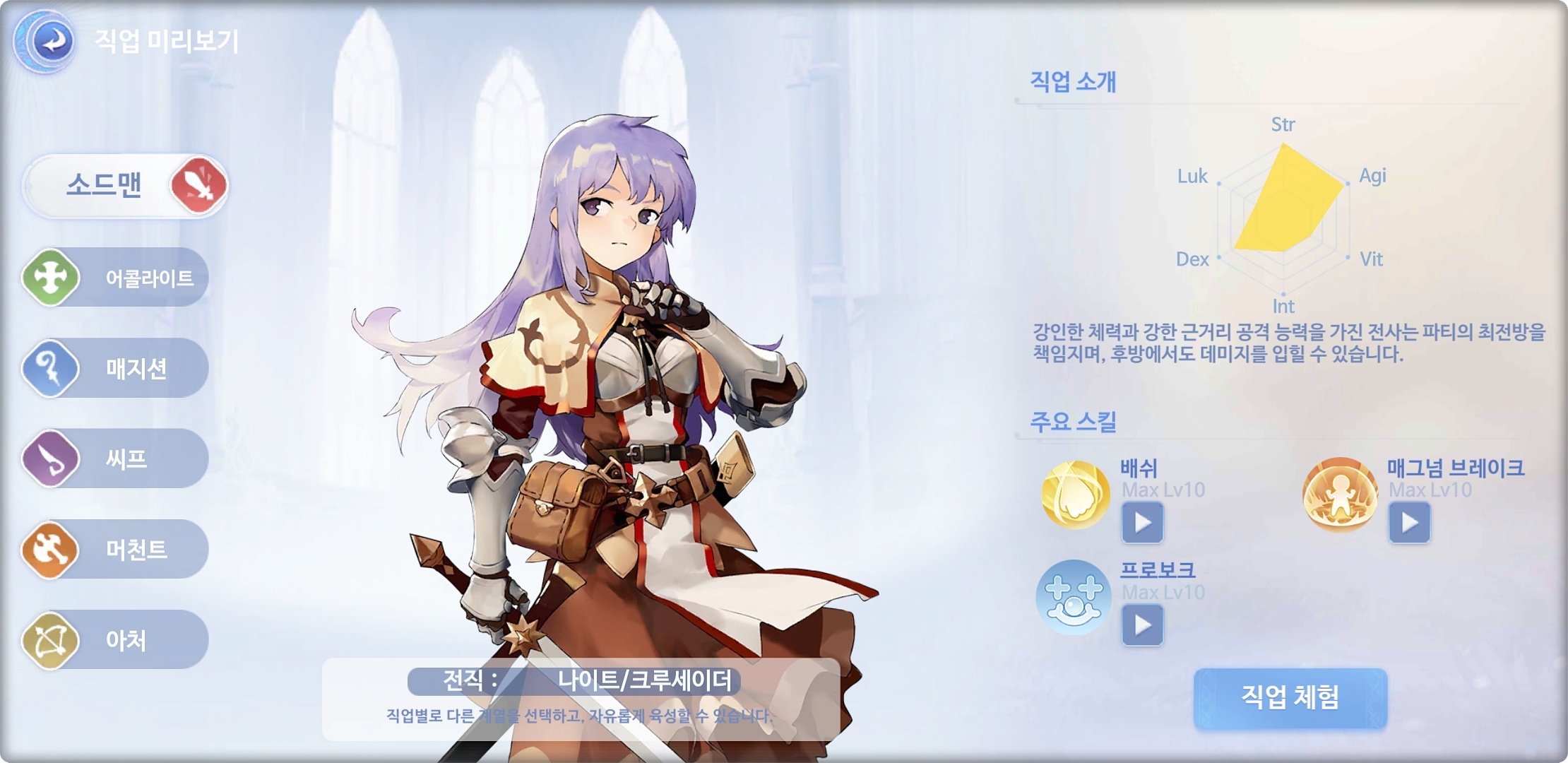 제목 보면 아시겠지만 모든 직업군중에서 가장 과금 빨 받기 좋은 직업군입니다. 모든 직업 중에서 가장 좋은 탱킹 능력을 보유하고 있어 탱킹 역할도 수행이 가능하고, 세팅과 스킬셋에 따라서는 딜러 포지션도 가능한 직업군이 바로 검사 계열입니다. 또 탱커일때 파티 수요도 높아 파티 구하기도 쉬운 직업입니다.