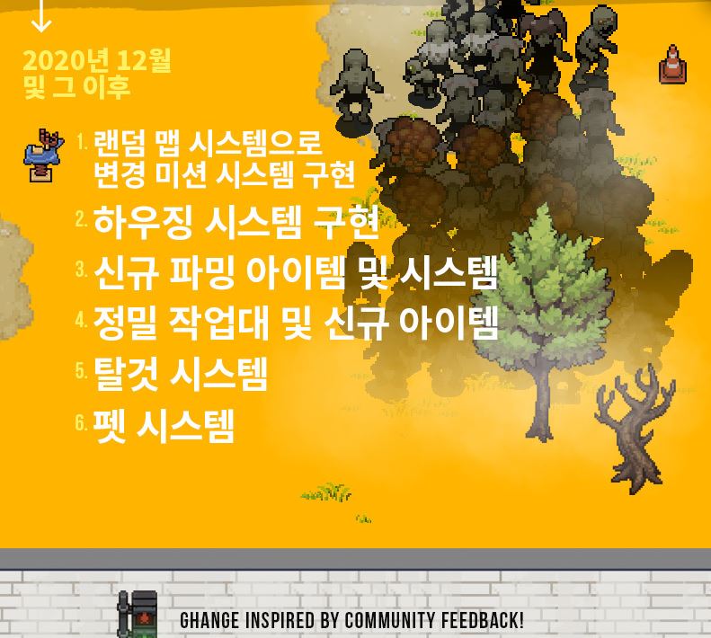 사실 단점은 10~20개 정도는 되고, 장점은 2~4개 정도 보이는데 차이가 심하기는 하지만 장점이 시간이 흐를수록 더 큰 힘을 발휘하지 않을까 하는 게임입니다. 국산 인디게임 치고 괜찮다고 느꼈는데 마지막으로 개발자님의 로드맵으로 마무리를 하겠습니다.