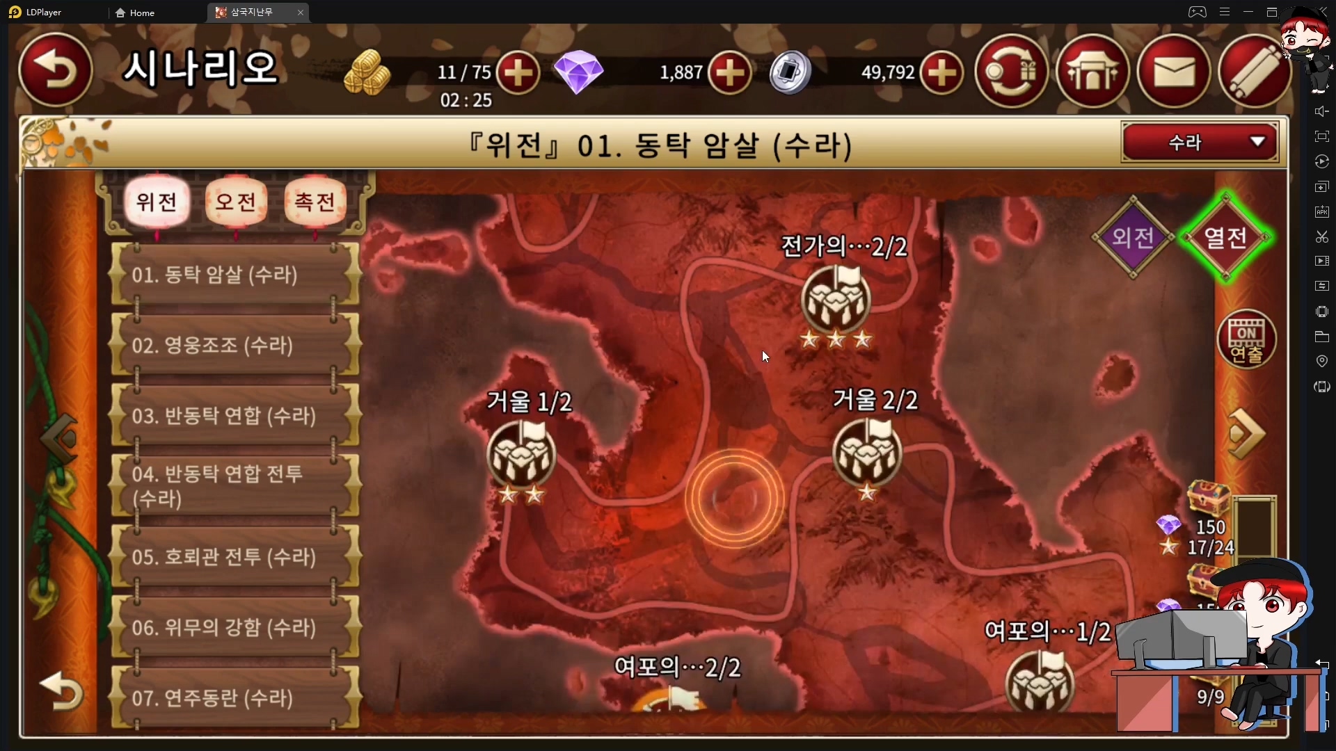 다음으로 다이아 휘석을 사용해 군량미를 채우고 최대한 시나리오를 미는 것이 중요하다고 합니다. 이유는 뒤로 갈수록 장신구의 등급이 증가하며, 영웅 혼 = 조각을 획득할 수 있기 때문에 시나리오를 최대한 빨리 밀어야 한다고 하네요.