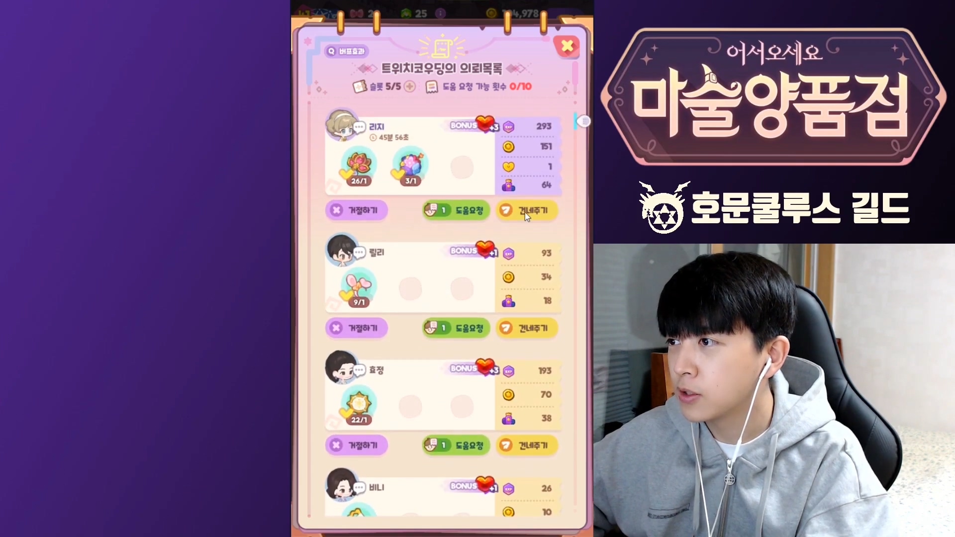 길드 내의 요청 시스템이 있는데 수가 적은 속성을 선택하면 많은 분들을 도와줄 수 있어서 도움이 되고 플레이어 본인도 공헌도를 획득할 수 있어서 좋다고 합니다.