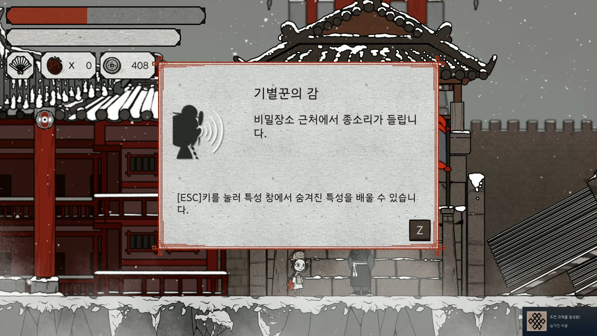 일단 공략을 하기 전에 얼어붙은 고원에서 기별꾼의 감을 익히시면 공략 없이도 최대한 쉽게 숨겨진 장소들을 찾아낼 수 있습니다. 모든 숨겨진 장소를 가기 위해서는 지하수로까지는 깨서 부채를 얻어야 하기 때문에 너무 급하게 얻을 필요는 없지만 미리 습득을 해둔다면 최대한 찾아야 하는 장소를 줄일 수가 있습니다.
