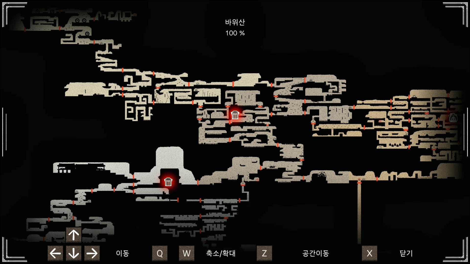 루트도 짧은 편인데 순환식으로 한 바퀴 도는 구조라 쉽게 100% 달성이 가능한 지역입니다. 아마 천장쪽에 숨겨진 지역만 찾아낸다면 쉽게 100%달성 가능하실 겁니다.