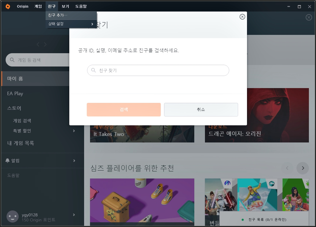 친구패스로 초대하기 위해서는 오리진 아이디와 오리진 설치가 필요합니다. 게임을 설치하면서 같이 진행이 되지만 동시에 할 수도 있으니 오리진 홈페이지에서 아이디를 만들고 오리진에 접속해 친구를 추가해주세요.