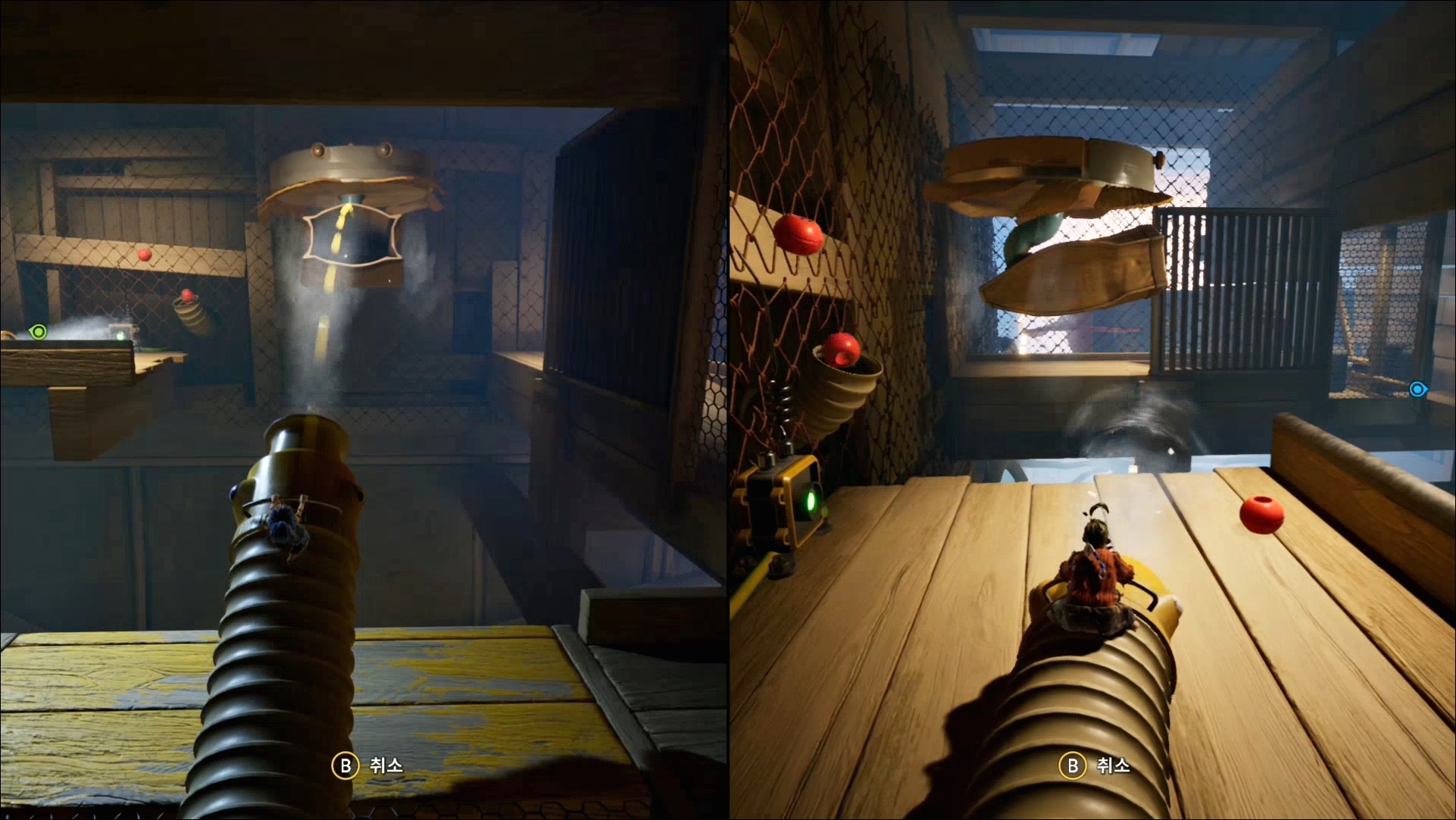 게임은 협력을 상당히 중요하게 생각을 하는데요. 대부분의 기믹들이 혼자서는 풀어나갈 수 없는 구조를 가지고 있습니다. 근데 이때 놀라운 건 각각의 화면이 탑뷰, 사이드뷰, 3인칭뷰 1인칭뷰 등 정말 자유자재로 변하며 횡스크롤 게임, 퍼즐 게임, 액션 게임, 슈팅 게임을 하는 듯 장르가 바뀌는 듯한 느낌을 받을 수 있습니다.